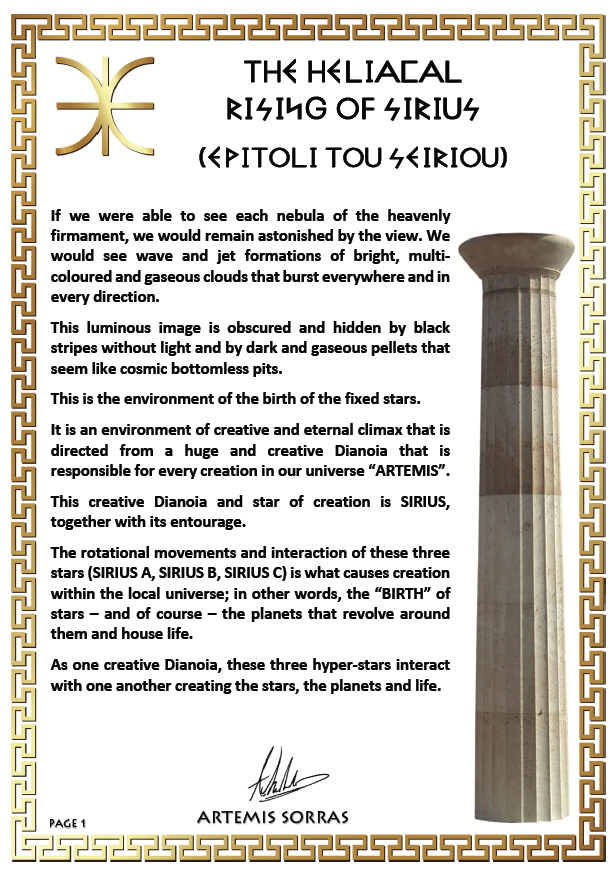 This event is not a miracle in the way that humans have been told and believe today and in the way miracles have been written in certain books. On the contrary, every Ellanio year during “The Heliacal Rising of SIRIUS”, there exists a true, absolute, divine and creative phenomenon which proves itself through experience that you yourself can experience, live and feel.